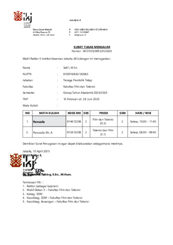 safii, sarim Bukti Ajar Mata Kuliah Pancasila Semester Genap 2024/2025. Fakultas Film dan Televisi IKJ. (Unpublished)