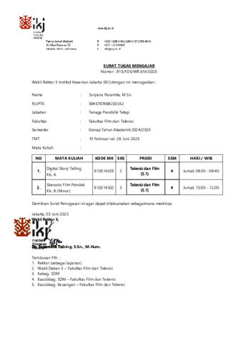 Suryana Paramita, Suryana Bukti Ajar Mata Kuliah Skenario Film Pendek (Minor) Semester Genap 2024/2025. Fakultas Film dan Televisi IKJ. (Unpublished)