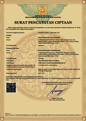prabowo, gatot SERTIFIKAT HAK CIPTA EC002023138188 Audio Series “Anak Yang Hilang Episode 1-8”. Institut Kesenian Jakarta.