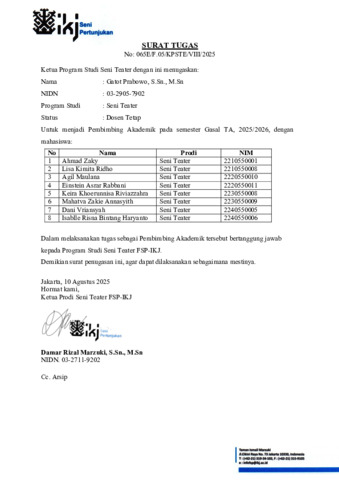 prabowo, gatot SURAT TUGAS PA GASAL 2025/2026. institut kesenian jakarta.