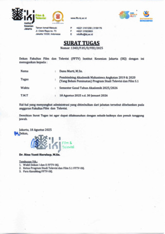 Murti, Danu Surat Tugas Pembimbing Akademik Ganjil 2025/2026 Danu Murti, M.Sn. Fakultas Film dan Televisi - IKJ. (Unpublished)
