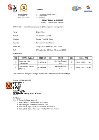 Erlan, Erlan Bukti Ajar Mata Kuliah Dokumenter Televisi (Mayor) Semester Ganjil 2025/2026. Fakultas Film dan Televisi-Institut Kesenian Jakarta. (Unpublished)
