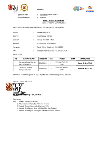 jerry, hanief Bukti Ajar Penyutradaraan Dasar dan Bahasa Film Semester Gasal 2025/2026. Fakultas Film dan Televisi. (Unpublished)