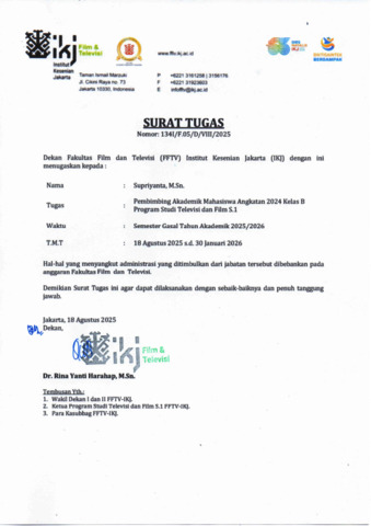 Supriyanta, - ST Pembimbing Akademik 2025/2026. FFTV IKJ. (Unpublished)