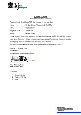 Phetorant, DJ. Dimas ST Pembimbing Akademik. Institut Kesenian Jakarta.
