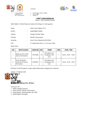 Farid, Hilmar Bukti Pengajaran Matakuliah Wawasan Seni Urban. Sekolah Pascasarjana IKJ. (Unpublished)