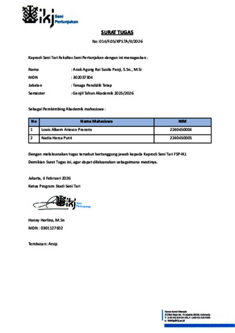 Panji, A.A. Rai Susila Surat tugas pembimbing akademik semester ganjil 2025/2026. Institut Kesenian Jakarta.