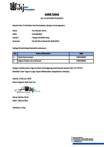 Ekawati, Ery Surat Tugas Pembimbing Akademik Semester Ganjil TA 2025-2026. Institut Kesenian Jakarta.