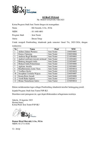 susanto, edi Surat Tugas Pembimbing Akademik. Institut Kesenian Jakarta.