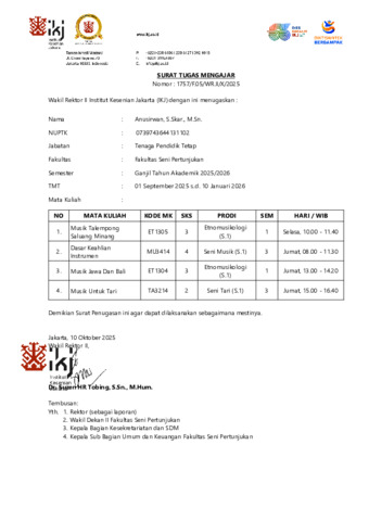 Anusirwan, anusirwan Bukti mengajar Dasar Keahlian Instrumen. Institut Kesenian Jakarta.