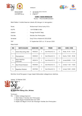 Mohammad Cristna Irama, Mohammad Cristna Irama Bukti ajar Repertoar Modern. institut kesenian jakarta.