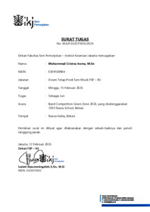 Mohammad Cristna Irama, Mohammad Cristna Irama Surat Tugas Band Competition Greenzone 2026. institut kesenian jakarta.